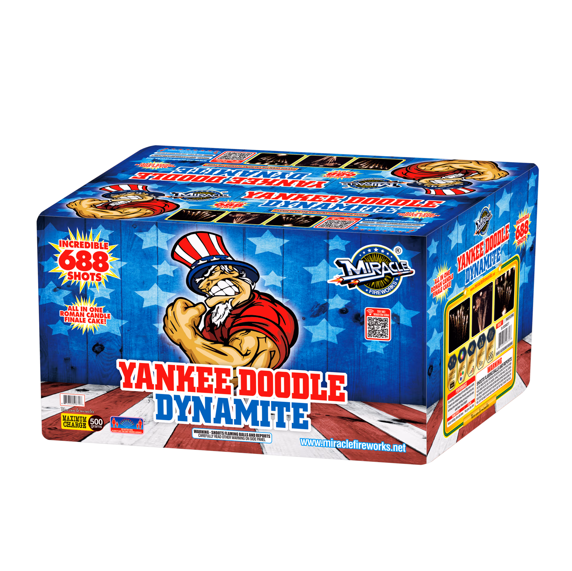500 gram roman candle Z-cake shoots brocade crown tail to chrysanthemum with with blue, silver twister; whistling red and green with silver spike flower. 688 shots. Case of 2 units.